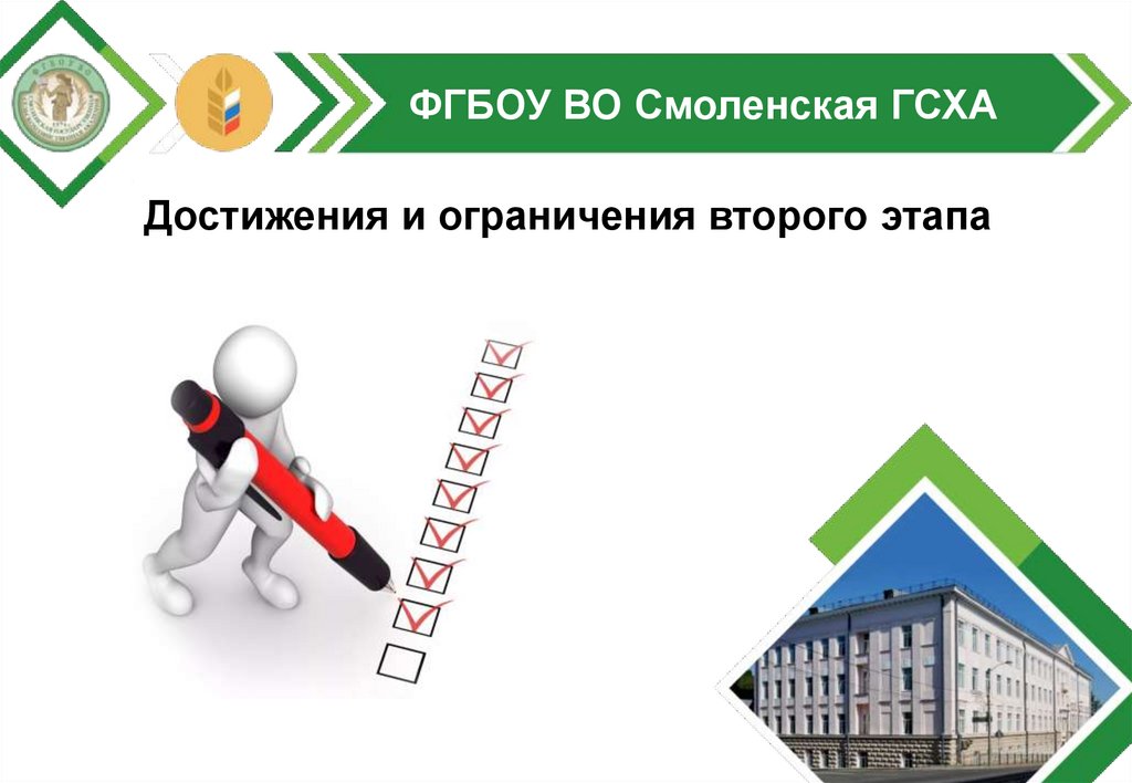 ФГБОУ ВО Смоленская ГСХАДостижения и ограничения второго этапа