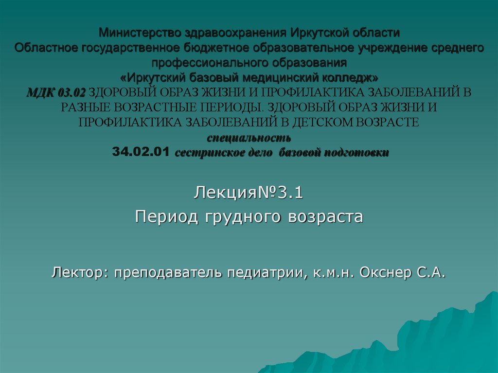 Министерство здравоохранения Иркутской областиОбластное государственное бюджетное образовательное учреждение среднего