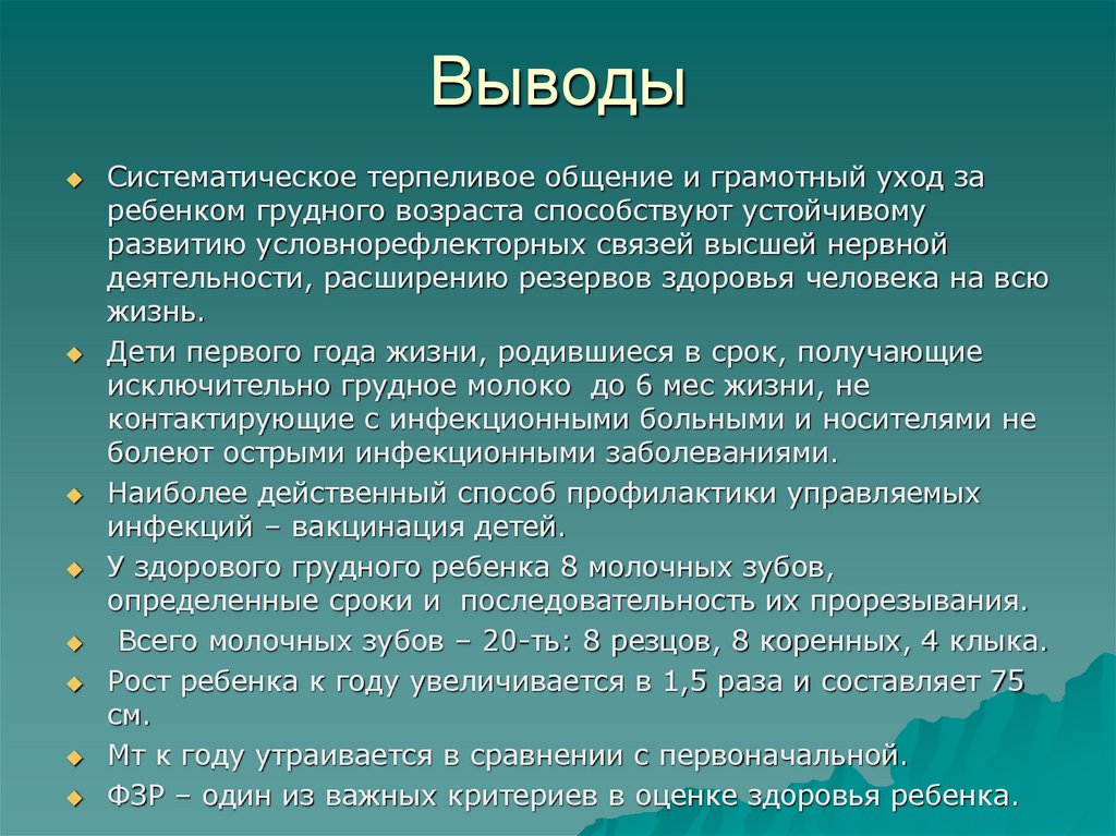 ВыводыСистематическое терпеливое общение и грамотный уход за