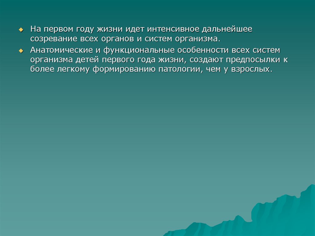 На первом году жизни идет интенсивное дальнейшеесозревание всех органов и систем организма.