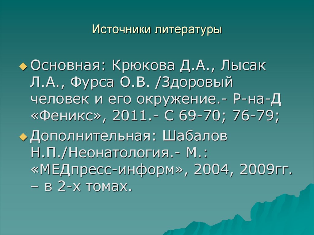 Источники литературыОсновная: Крюкова Д.А., Лысак
