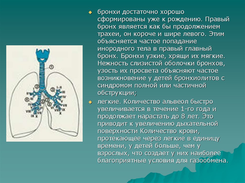 бронхи достаточно хорошосформированы уже к рождению. Правый