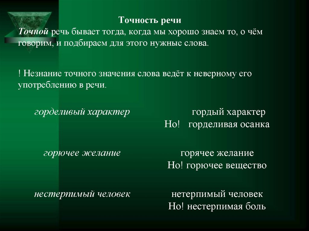 Точность речиТочной речь бывает тогда, когда мы хорошо знаем то, о чём