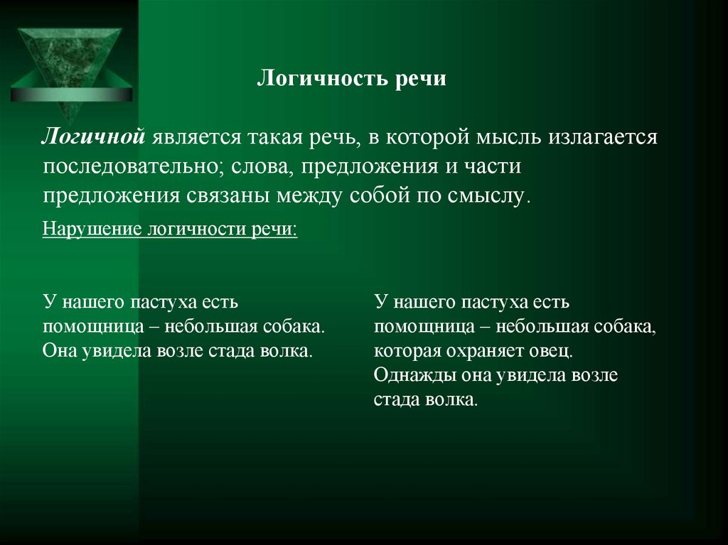 логичность (владение логикой изложения);