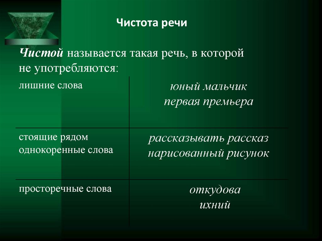чистота (отсутствие в речи элементов, чуждых