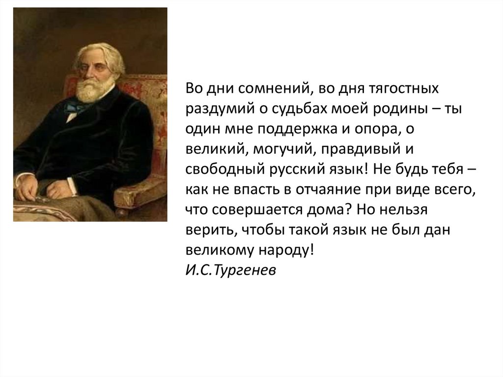 Во дни сомнений, во дня тягостныхраздумий о судьбах моей родины – ты