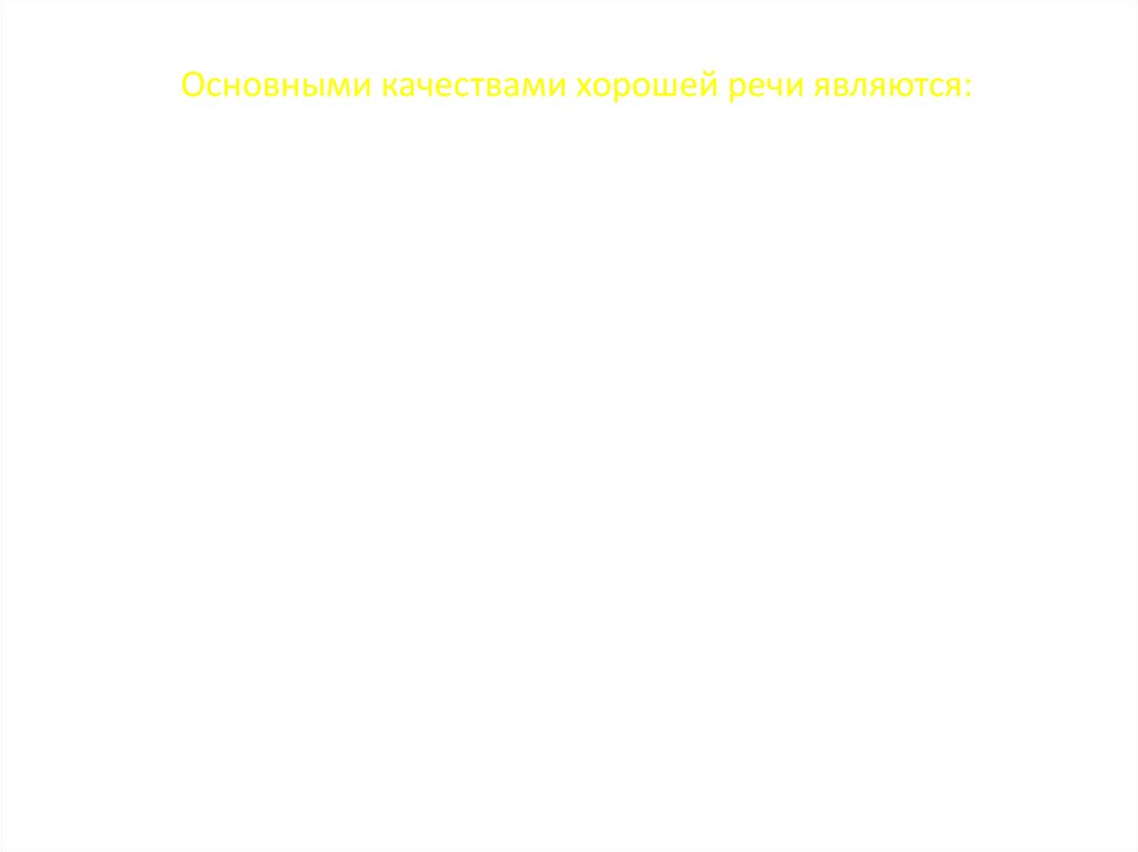 Основными качествами хорошей речи являются:правильность (соблюдение норм литературного языка