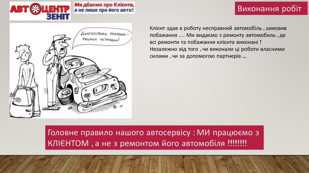 Виконання робітКлієнт здав в роботу несправний автомобіль , замовив