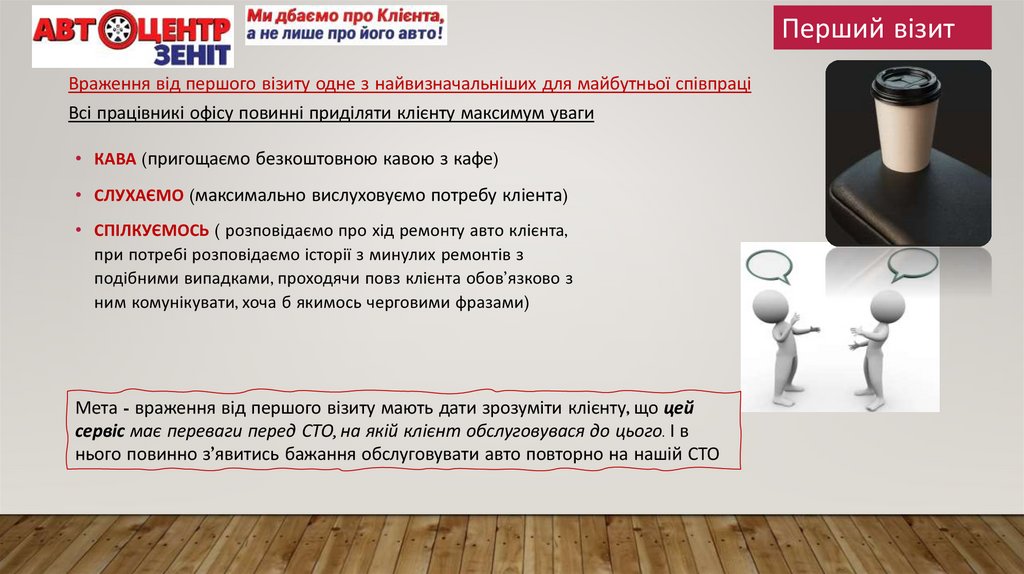 Мета - враження від першого візиту мають дати зрозуміти клієнту, що цей