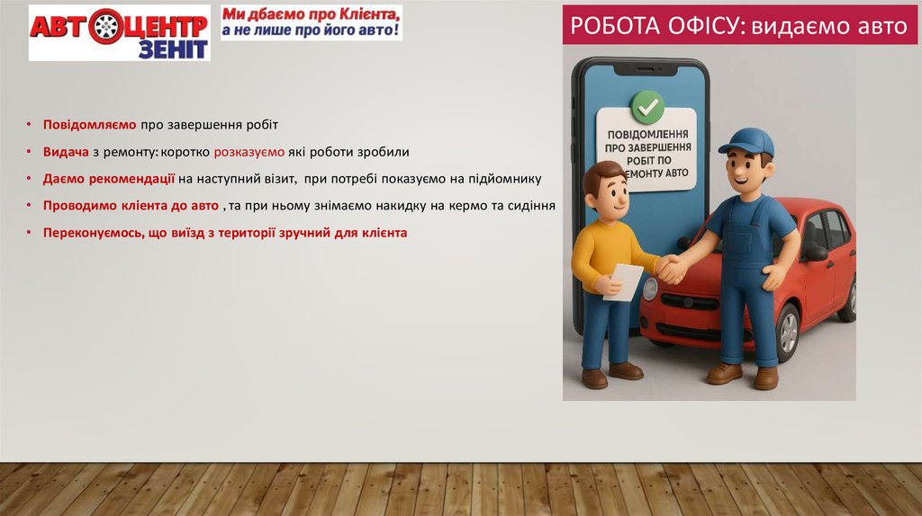 РОБОТА ОФІСУ: видаємо авто• Повідомляємо про завершення робіт