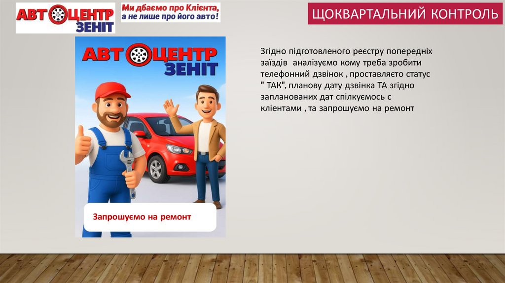 нього повинно з’явитись бажання обслуговувати авто повторно на нашій СТО