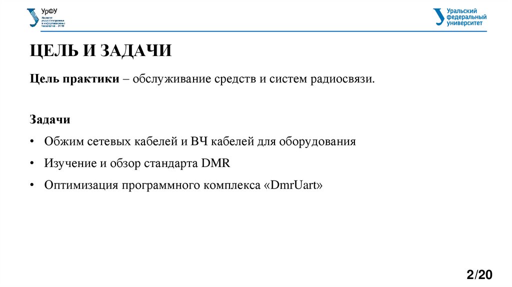 ЦЕЛЬ И ЗАДАЧИЦель практики – обслуживание средств и систем радиосвязи.