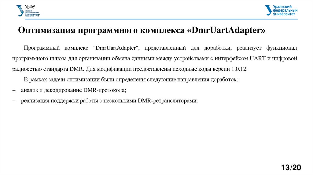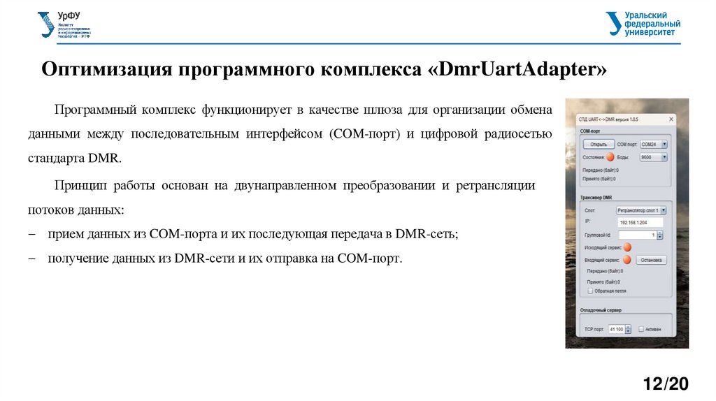 Оптимизация программного комплекса «DmrUartAdapter»Программный комплекс "DmrUartAdapter", представленный для доработки, реализует функционал