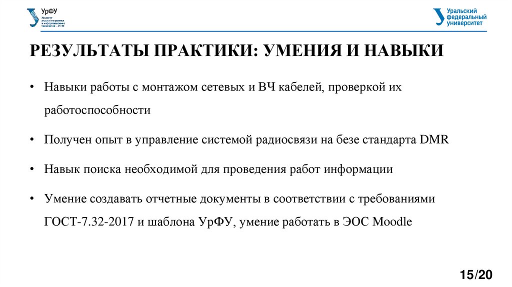 ГОСТ-7.32-2017 и шаблона УрФУ, умение работать в ЭОС Moodle