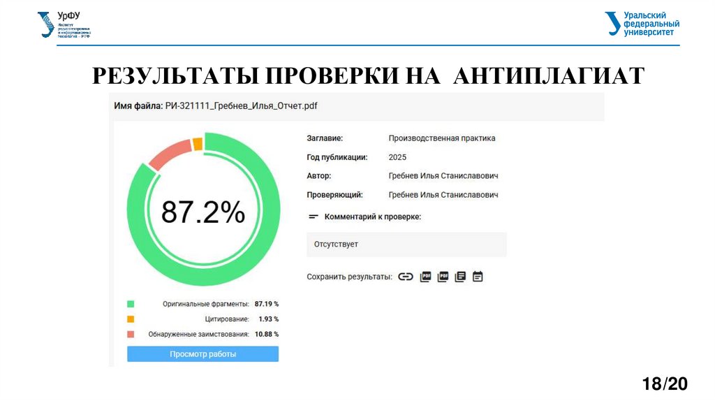 РЕЗУЛЬТАТЫ ПРОВЕРКИ НА АНТИПЛАГИАТ18/20