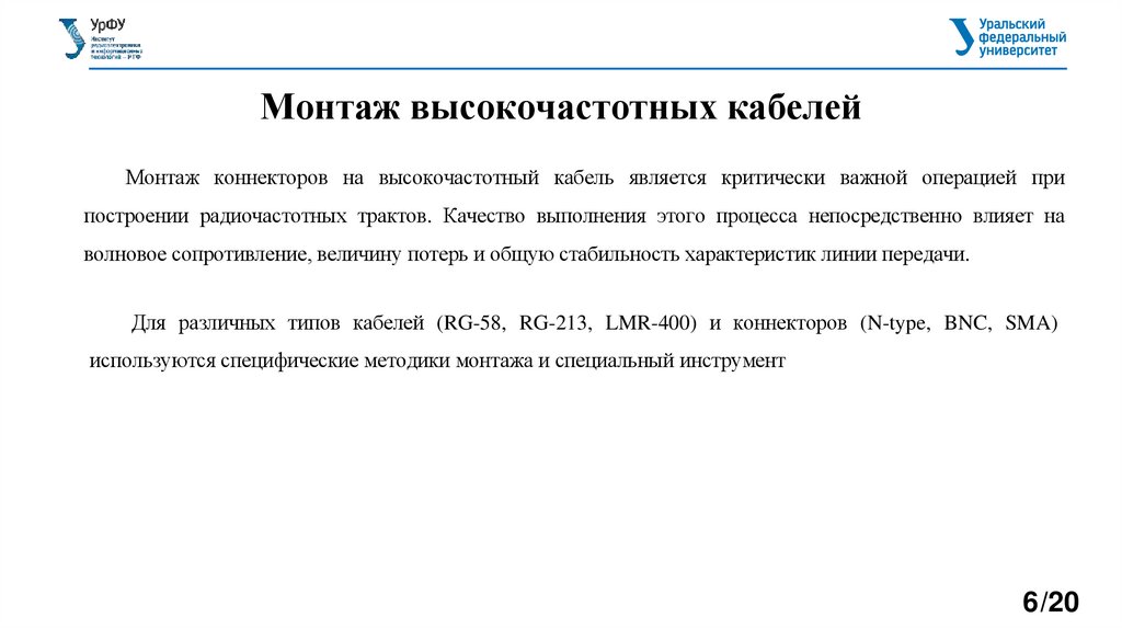 Монтаж высокочастотных кабелейМонтаж коннекторов на высокочастотный кабель является критически важной операцией при