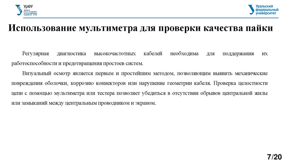 повреждения оболочки, коррозию коннекторов или нарушение геометрии кабеля. Проверка целостности