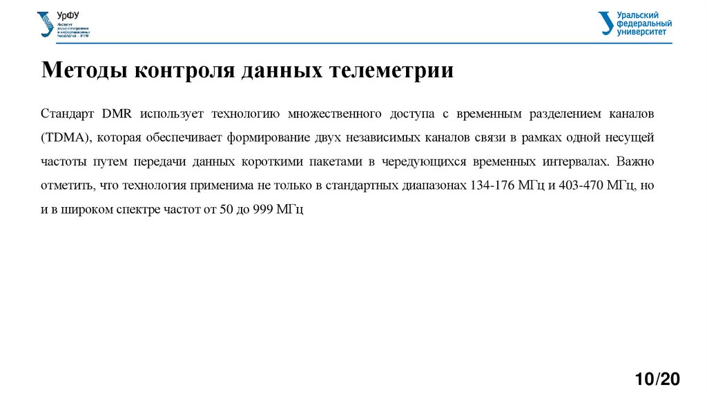 Методы контроля данных телеметрииСтандарт DMR использует технологию множественного доступа с временным разделением каналов