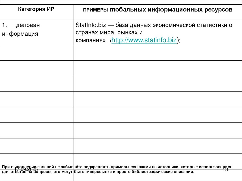 Категории информационных ресурсов и примеры глобальных информационных ресурсов