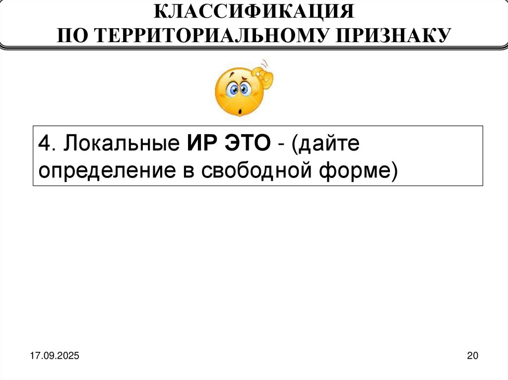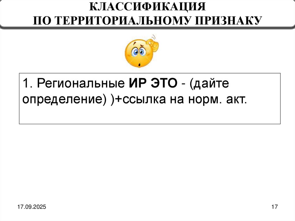 КЛАССИФИКАЦИЯ ПОТЕРРИТОРИАЛЬНОМУ ПРИЗНАКУ