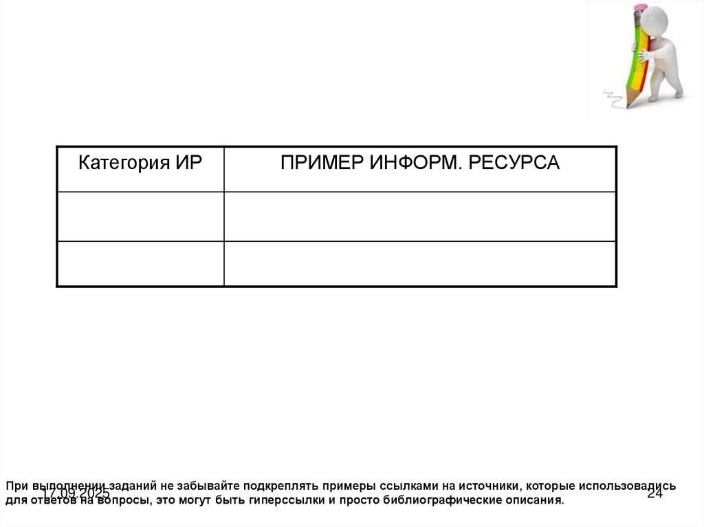 ПРИМЕР ИНФОРМ. РЕСУРСАПри выполнении заданий не забывайте подкреплять примеры ссылками на источники, которые