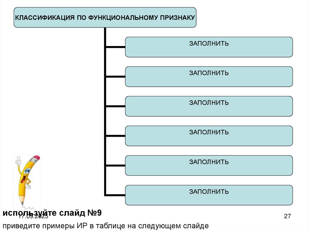 КЛАССИФИКАЦИЯ ПО ФУНКЦИОНАЛЬНОМУ ПРИЗНАКУЗАПОЛНИТЬ
