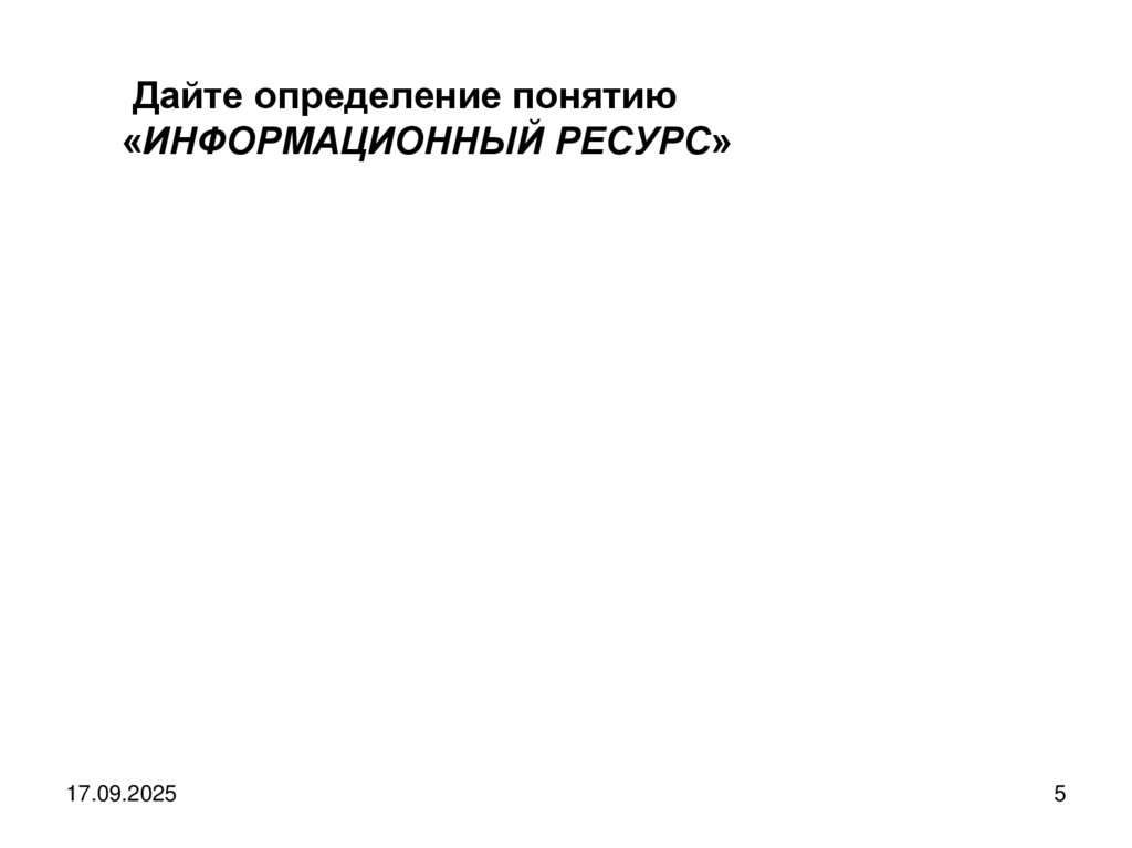 Дайте определение понятию«ИНФОРМАЦИОННЫЙ РЕСУРС»