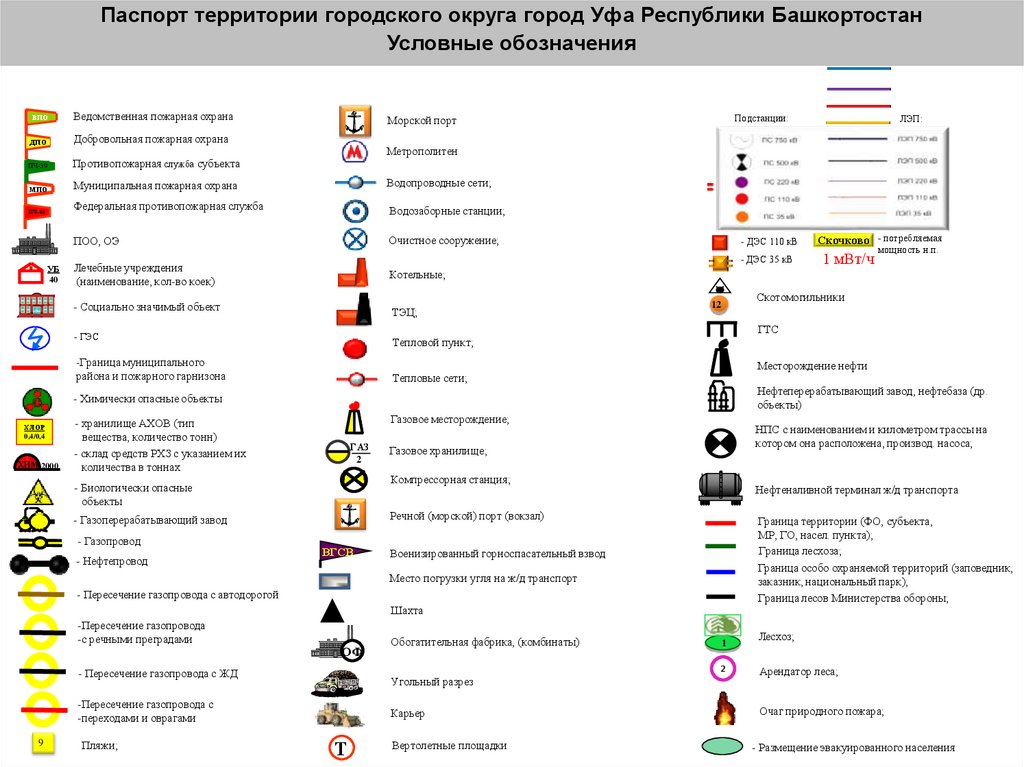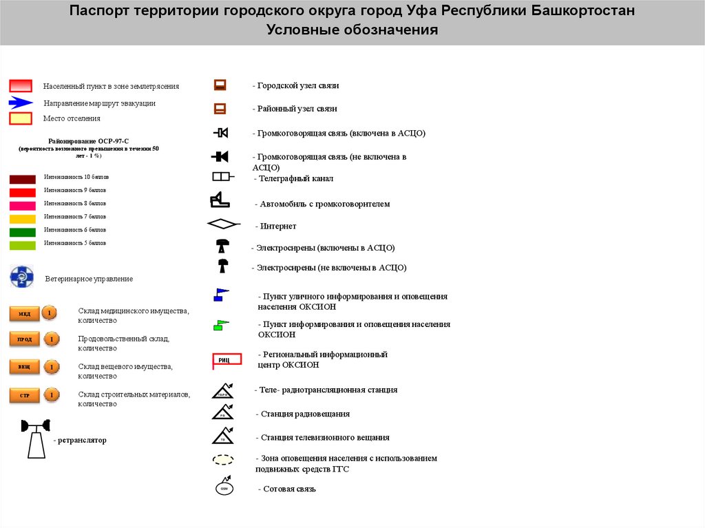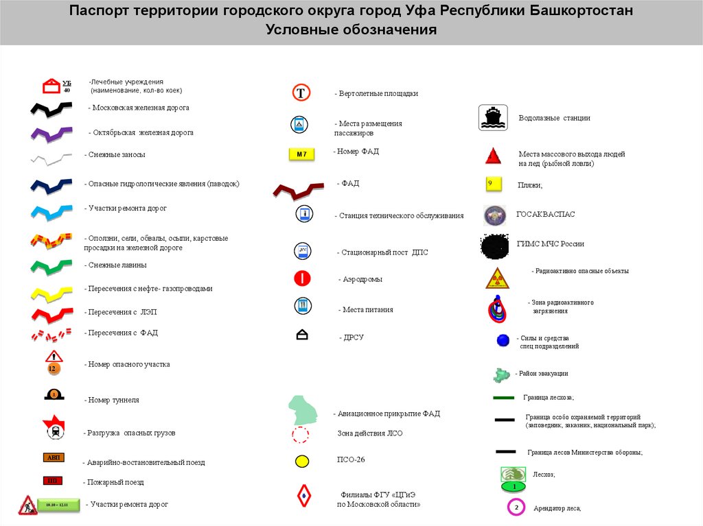 Паспорт территории городского округа город Уфа Республики БашкортостанУсловные обозначения