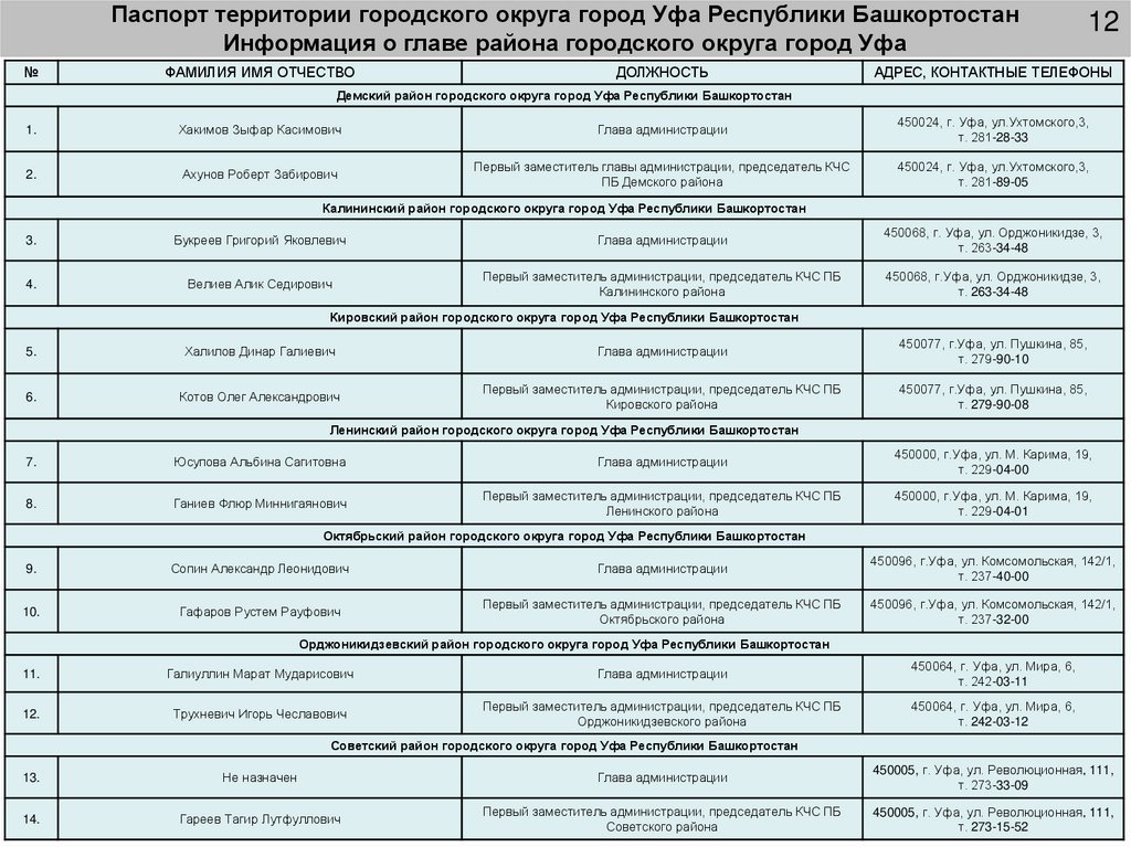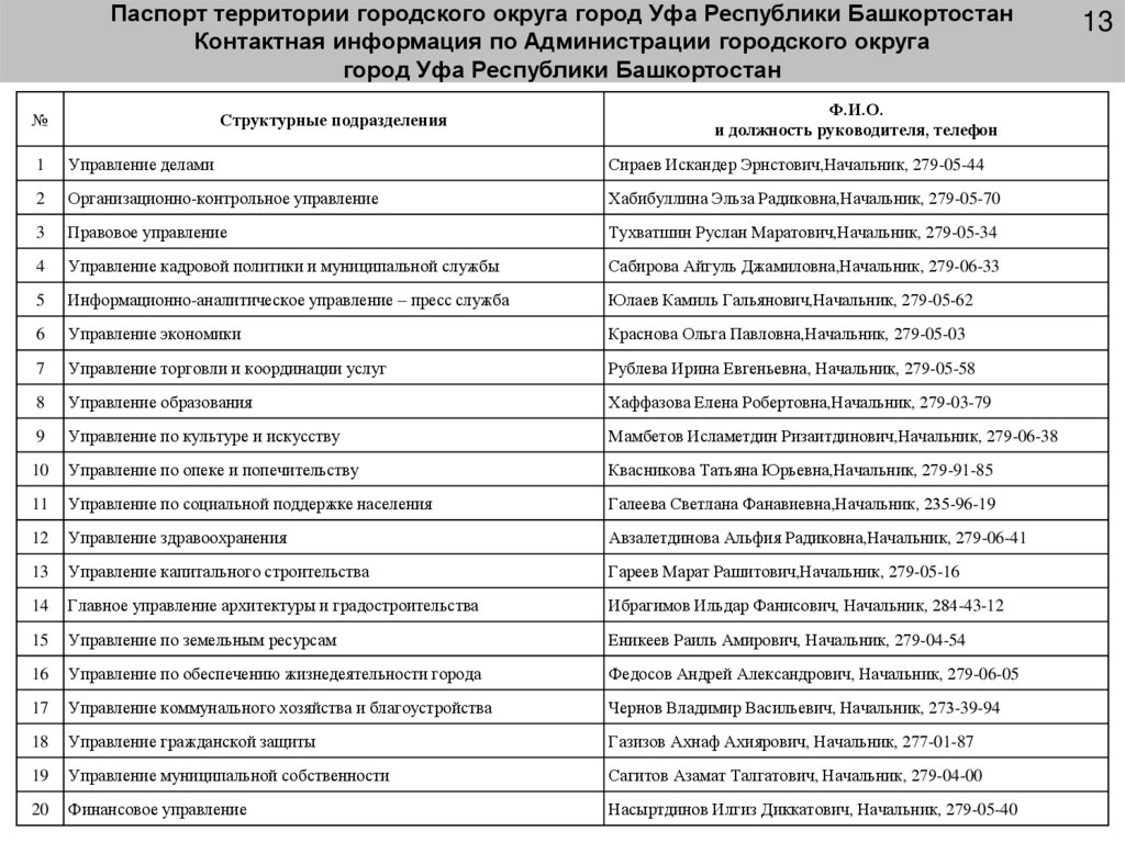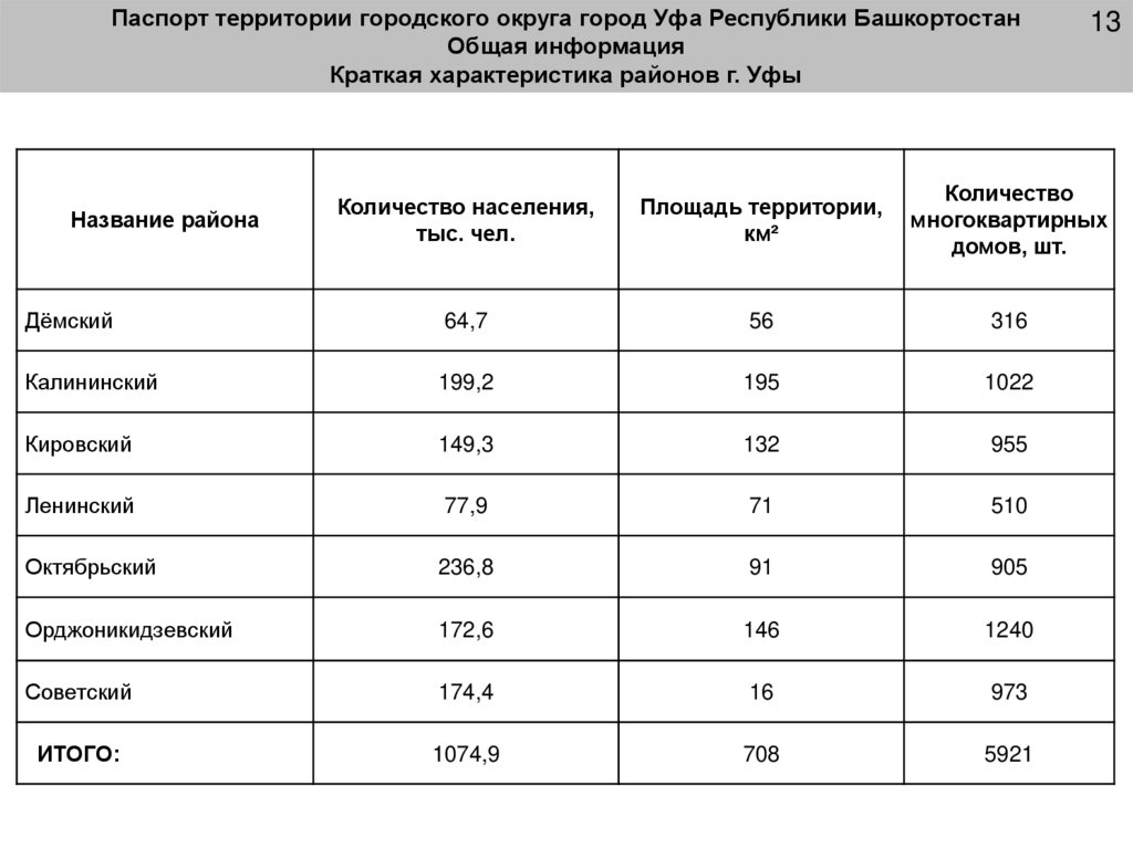 Электронный паспорт городского округа город Уфа Республики БашкортостанПАСПОРТ ТЕРРИТОРИИ