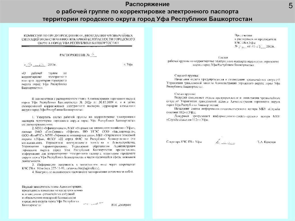 1. Распоряжение главы Администрации об утверждении электронного паспорта г. Уфы