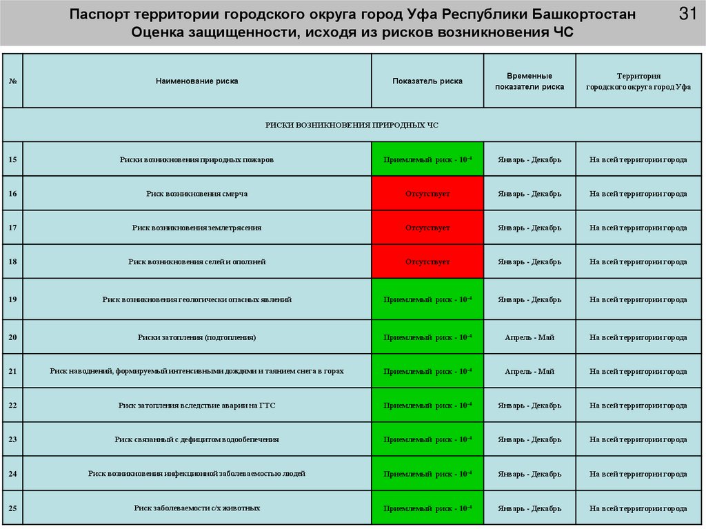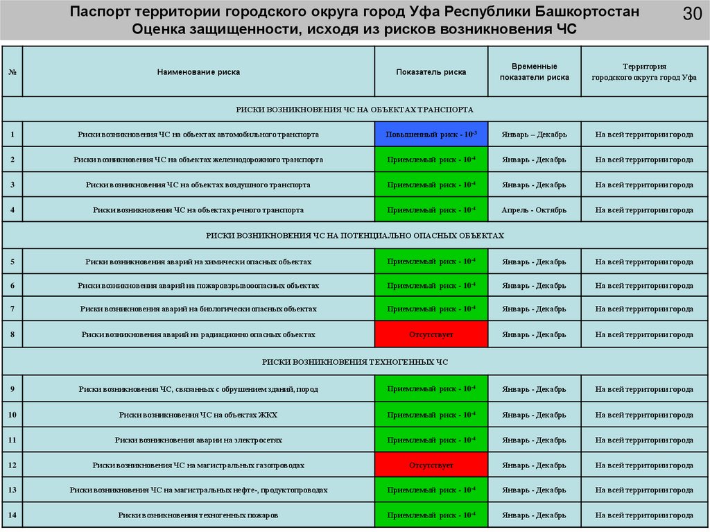 Исходя из рисков ЧС, характерных для городского округа город Уфа Республики Башкортостан, планируются и принимаются