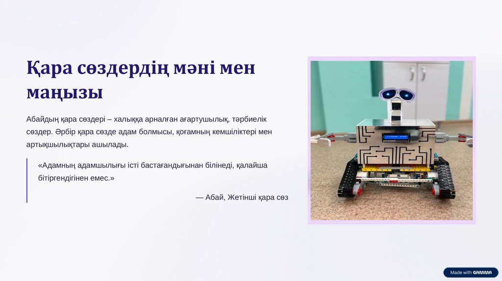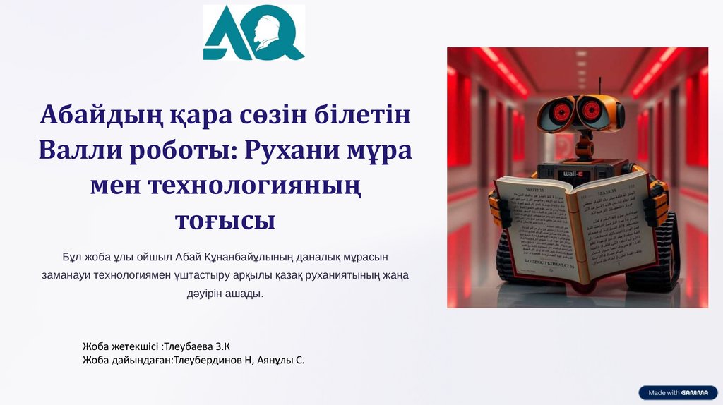 Абайдың қара сөзін білетінВалли роботы: Рухани мұра