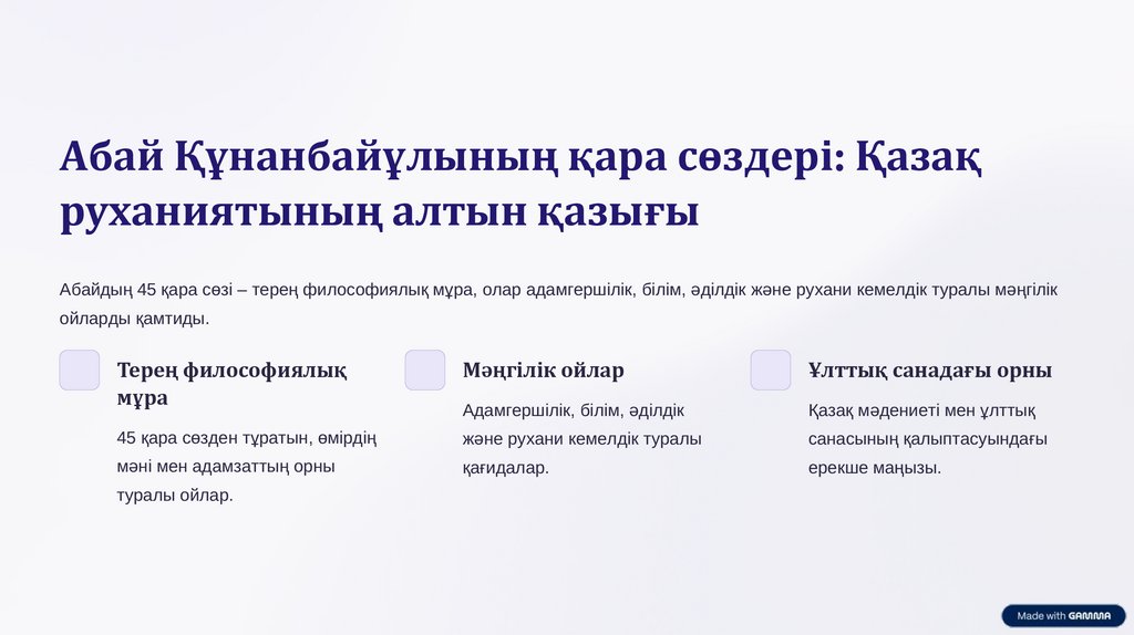 Абай Құнанбайұлының қара сөздері: Қазақруханиятының алтын қазығы