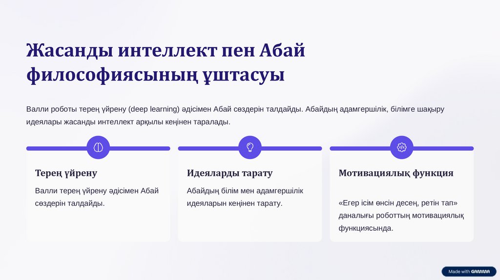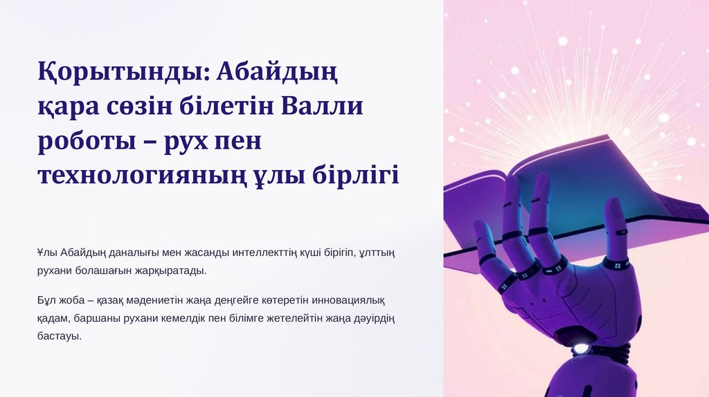 Валли роботы терең үйрену (deep learning) әдісімен Абай сөздерін талдайды. Абайдың адамгершілік, білімге шақыру