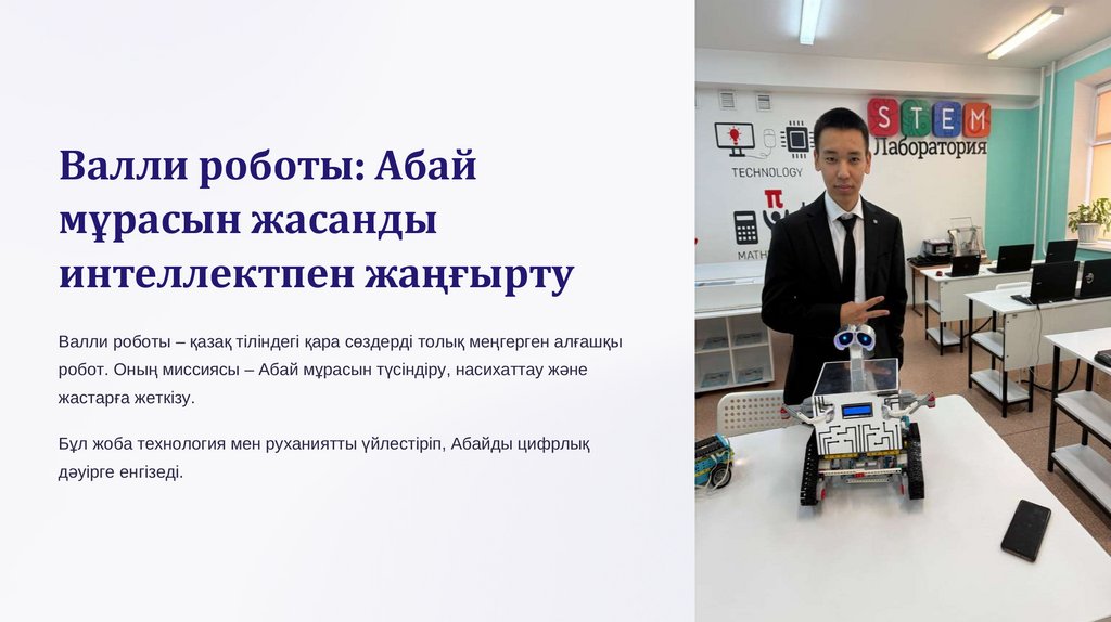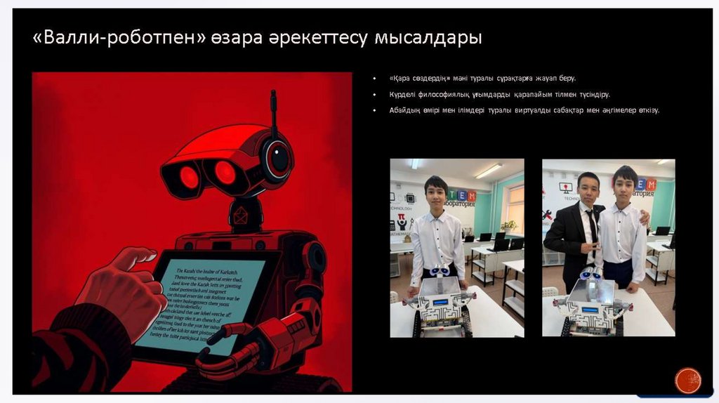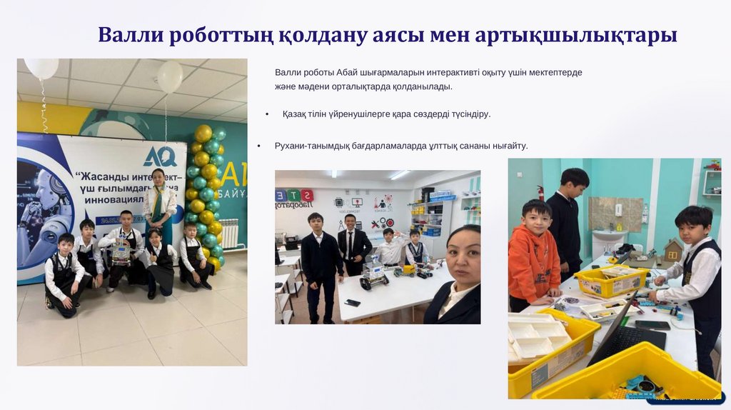 Валли роботтың қолдану аясы мен артықшылықтарыВалли роботы Абай шығармаларын интерактивті оқыту үшін мектептерде