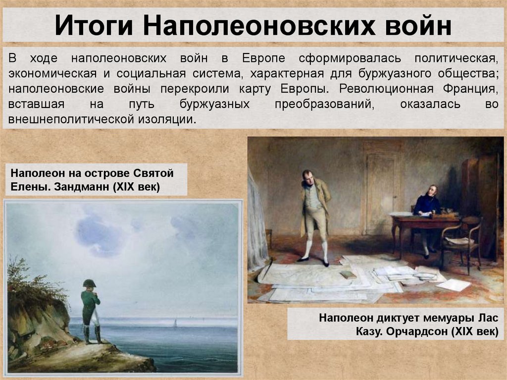 Итоги Наполеоновских войнВ ходе наполеоновских войн в Европе сформировалась политическая,