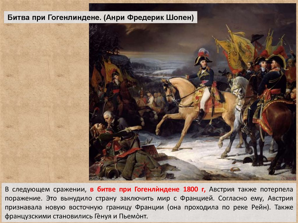 Битва при Гогенлиндене. (Анри Фредерик Шопен)В следующем сражении, в битве при Гогенлѝндене 1800 г, Австрия также потерпела