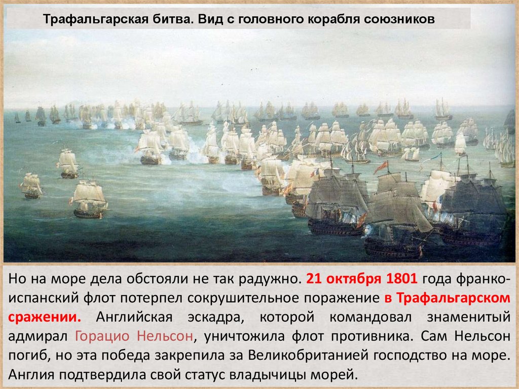 адмирал Горацио Нельсон, уничтожила флот противника. Сам Нельсон