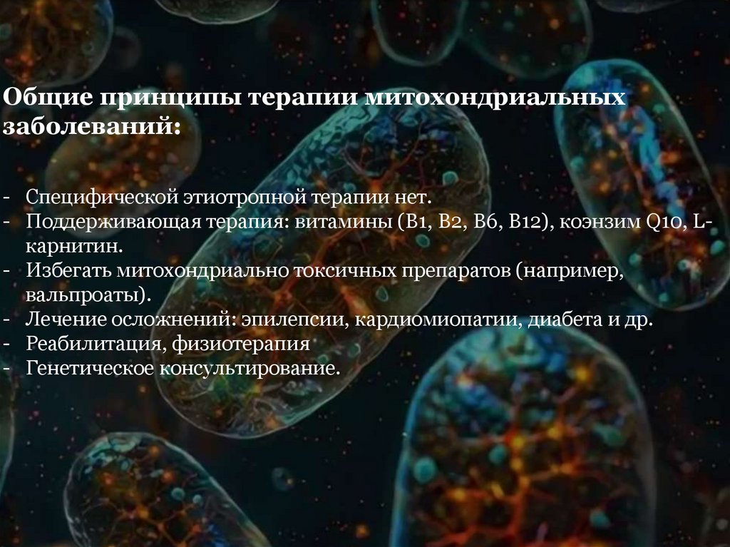 - Поддерживающая терапия: витамины (В1, В2, В6, В12), коэнзим Q10, Lкарнитин.