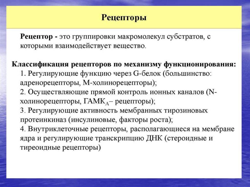 • Взаимодействие с рецептором• Взаимодействие с ионными каналами.
