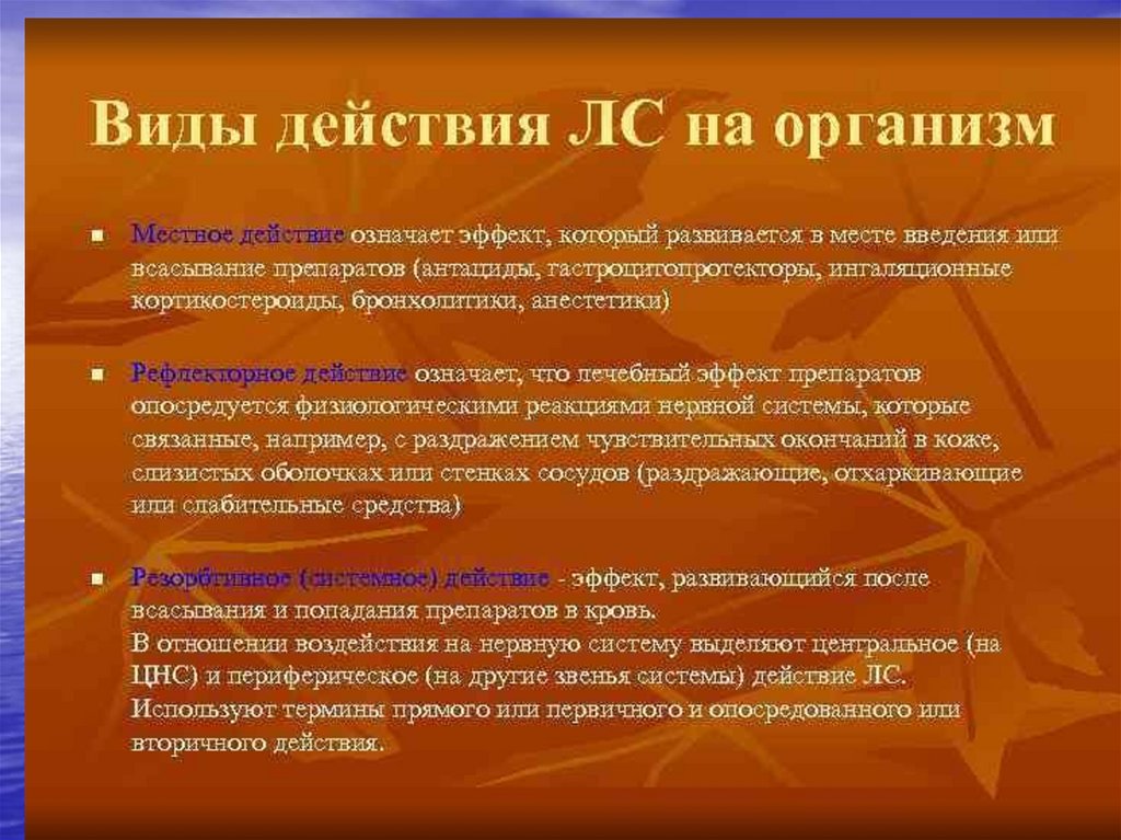 • Главное – то, на которое рассчитывает врач,назначая препарат в данных условиях.
