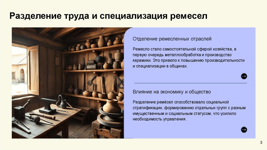 Разделение труда и специализация ремеселОтделение ремесленных отраслей