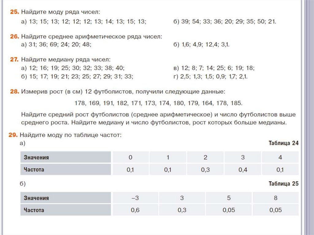 23. Найти моду, медиану, размах и дисперсию числовых наборов
