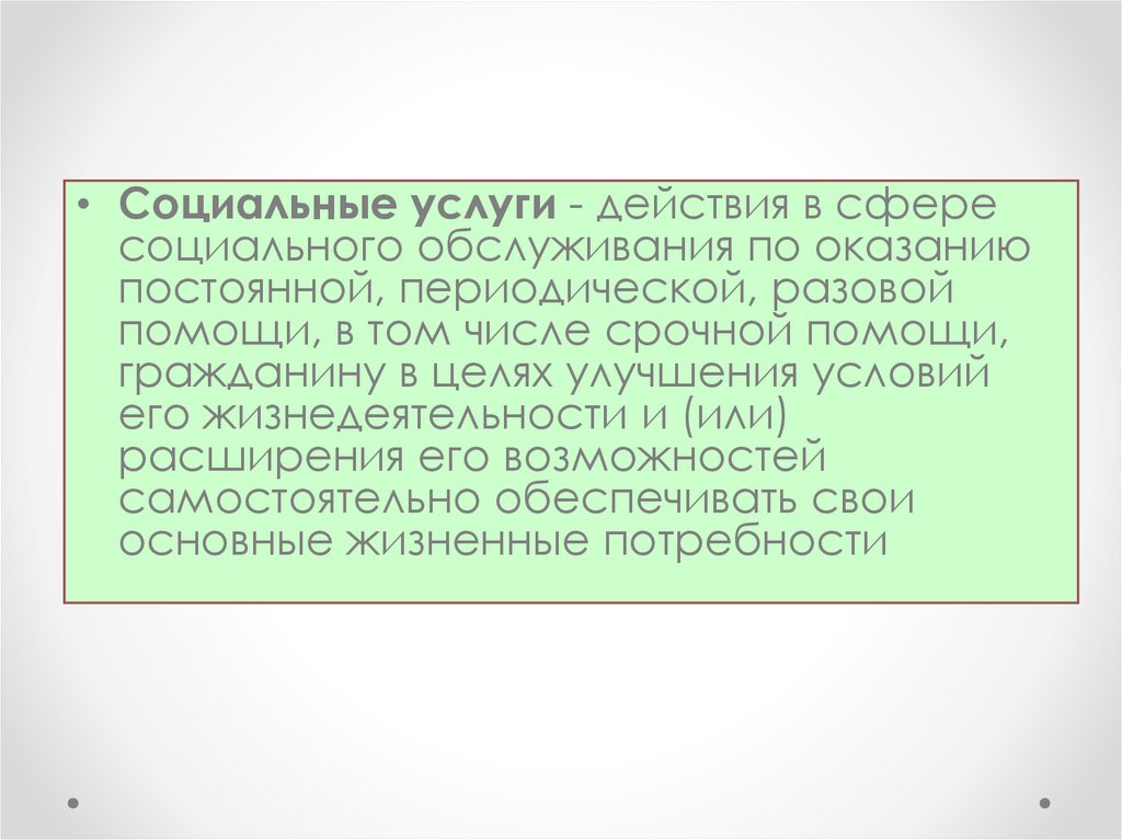 • Социальные услуги - действия в сфересоциального обслуживания по оказанию