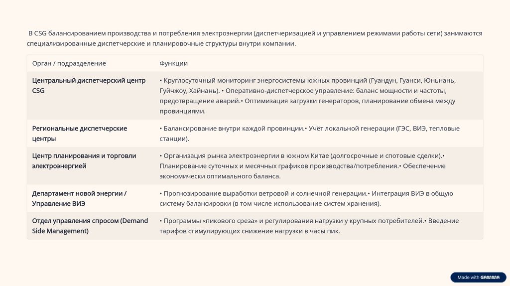 Гуйчжоу, Хайнань). • Оперативно-диспетчерское управление: баланс мощности и частоты,
