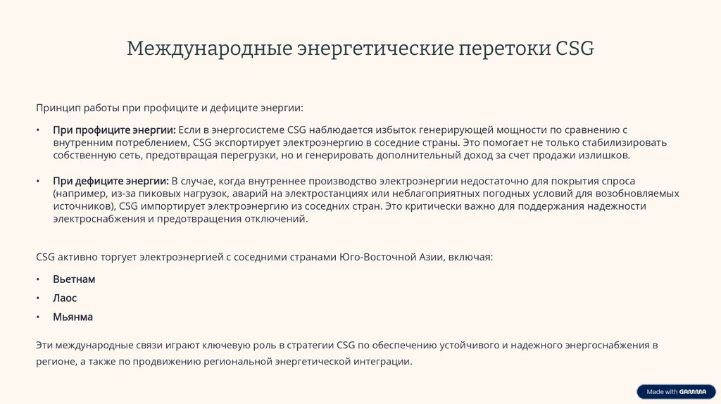 Эти международные связи играют ключевую роль в стратегии CSG по обеспечению устойчивого и надежного энергоснабжения в
