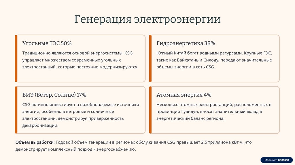Объем выработки: Годовой объем генерации в регионах обслуживания CSG превышает 2,5 триллиона кВт·ч, что