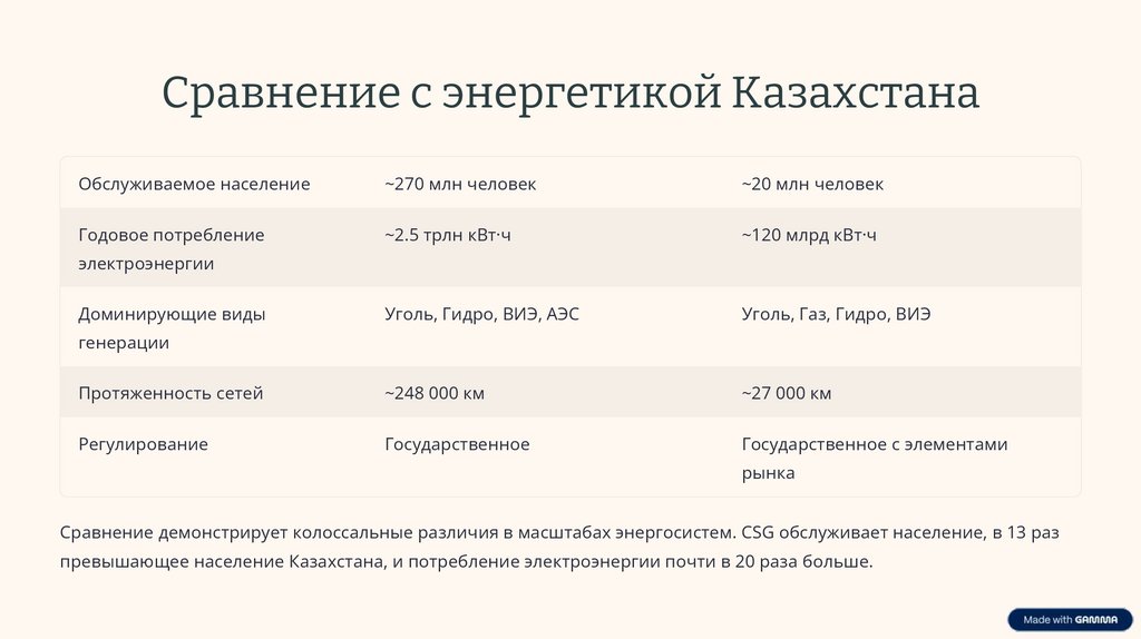 Сравнение с энергетикой КазахстанаОбслуживаемое население