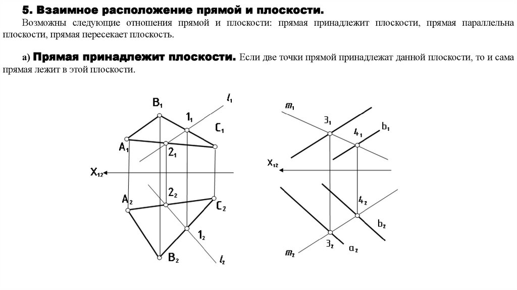 5. Взаимное расположение прямой и плоскости;