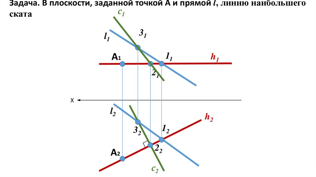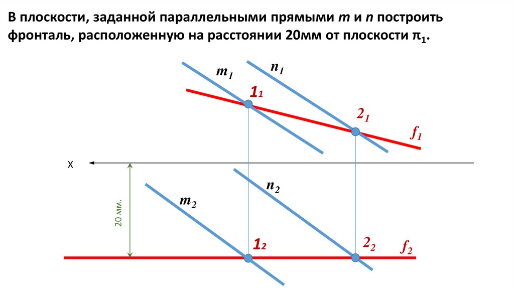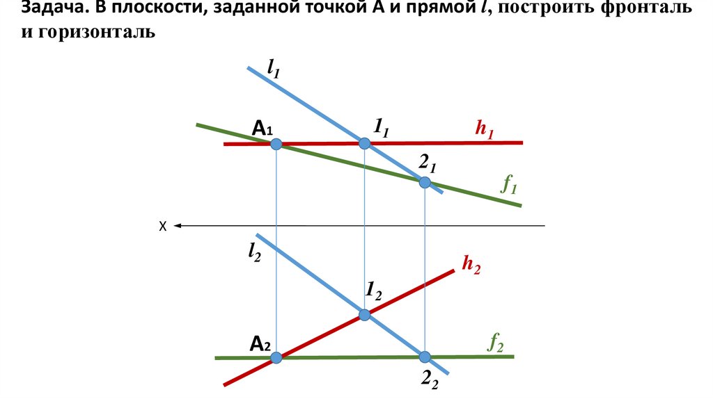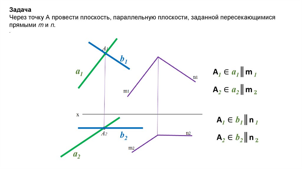 ЗадачаЧерез точку А провести плоскость, параллельную плоскости, заданной пересекающимися